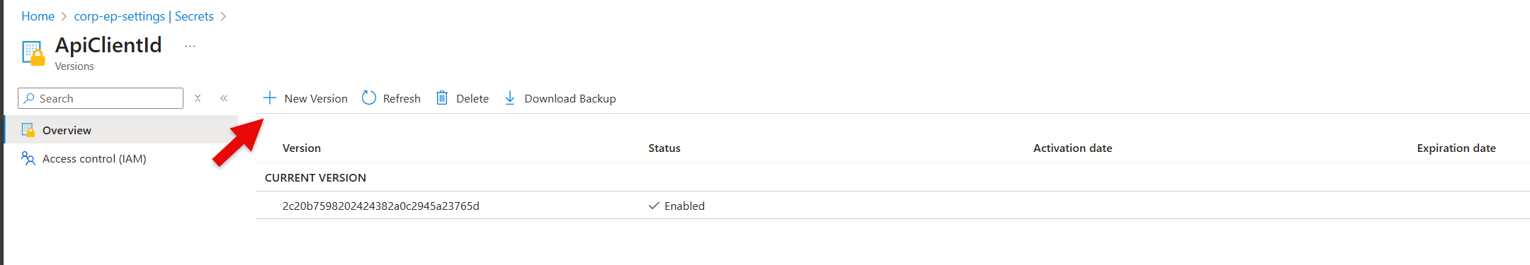 You can create a New version of a secret and save the Application (client) ID in the Secret field