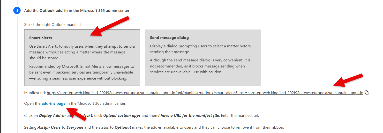 Wait a few minutes and check if the /setup page now displays the SmartAlerts Outlook choice