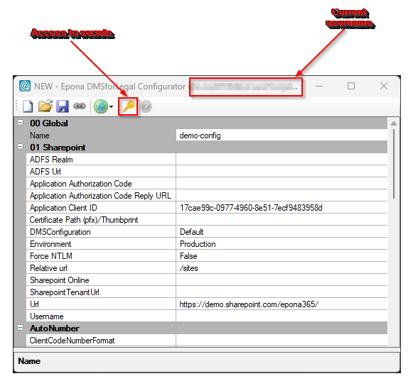 The active user(name) is shown in the window title so you can easily see the user context of the tool.